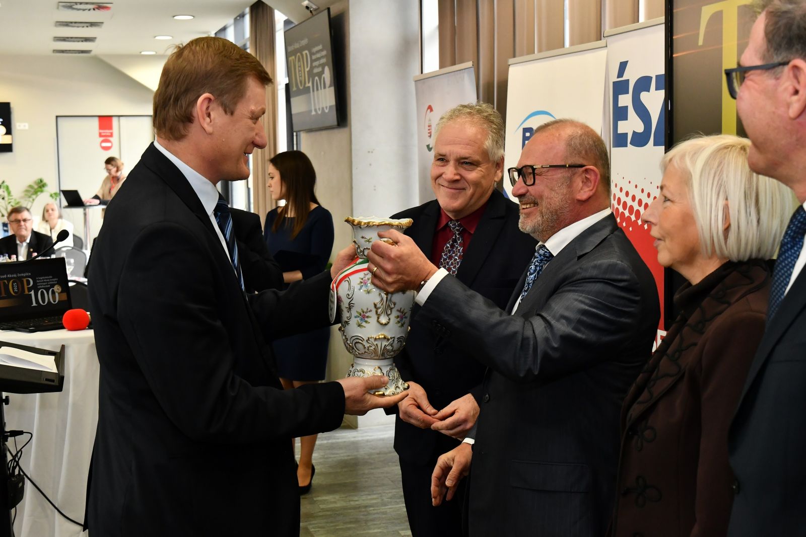 Az eseményen átadtuk a vármegyei TOP 100 kiadványt, amely tartalmazza az adóhatóság részletes elemzését a vármegye gazdaságáról, illetve a nettó árbevétel alapján mutatja be a 100+45 legnagyobb Borsod-Abaúj-Zemplén vármegyei céget.
